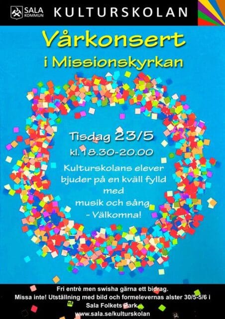 Detta evenemang har redan ägt rum. 23 maj, 2023 18:30 - 20:00 Kulturskolans vårkonsert Lägg till i kalender Google Kalender iCalendar Outlook 365 Outlook Live Dela