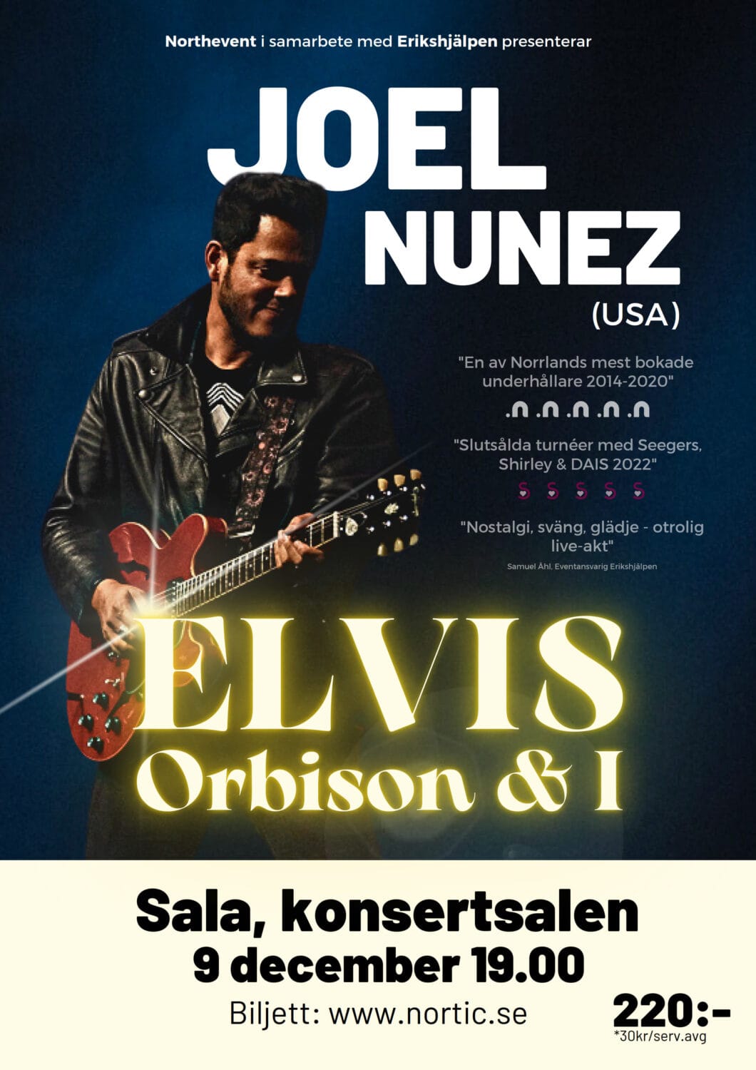 En konsert med älskade hits från Elvis, Orbison och Joel Nunez (USA) egna repertoar!