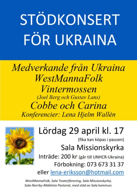 Detta evenemang har redan ägt rum. 29 april, 2023 17:00 - 19:00 Stödkonsert för Ukraina – WestMannaFolk med flera Lägg till i kalender Google Kalender iCalendar Outlook 365 Outlook Live Dela